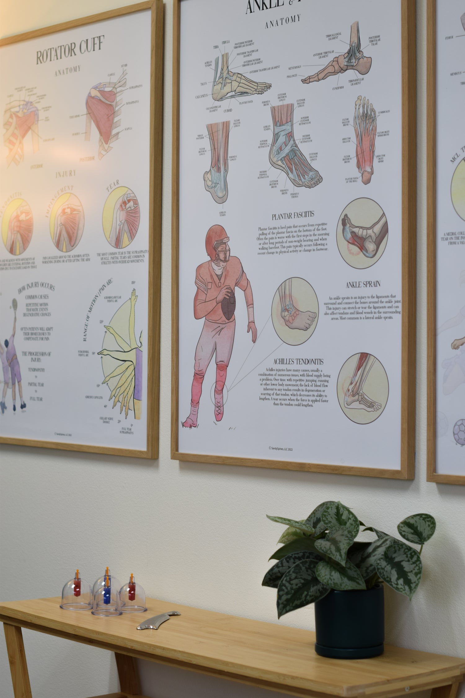 Educational and stylish art prints designed for chiropractors, physical therapists, massage therapists, and wellness practitioners.